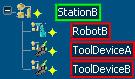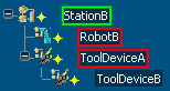 StationB aggregates the RobotB and ToolDeviceA logics. It is impossible for StationB to aggregate the ToolDeviceB logic.