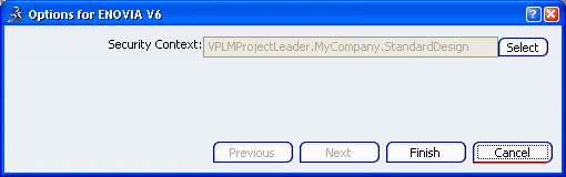 In the Options for ENOVIA V6 dialog box, click Select to choose a security context in the