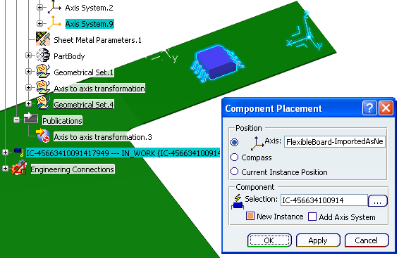 If you have not created an axis system, you must check the Add Axis System option and the axis system will be automatically created and published at the origin of the component.