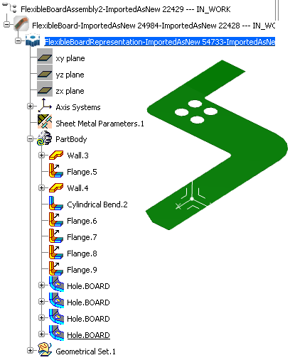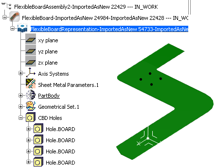 If a CBD holes represents several IDF holes, a circular cutout is created. If a CBD hole represents one IDF hole, a hole is created. As the multi-selection of CBD holes is authorized, the result can be a combination of the two.