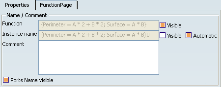 boxes to define whether the value of the function or the instance name