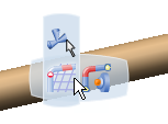 Initially the balloon is displayed in an unobtrusive low-light mode, but it becomes more visible when you move the pointer over it. Note: The balloon is temporarily hidden when you manipulate the Robot. To change an option, just pause over it and select a new option from the vertical balloon that appears. When you pause over an option, it is highlighted. Thus you can identify the selected option. To move the balloon out of the way and improve the view of your geometry, select the balloon and drag it to a new location. | |||||||||