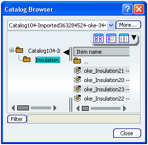 Add Insulation to the Part Based on Values in PRM TableYou can add insulation on a piping part from catalog browser based on values in PRM table. The part catalog set in the Piping/Tubing Discipline Resource set must contain a chapter named Insulation with at least two keywords InsulationThickness and InsulationType. The other PRM resources should also be assigned. Note: Depending upon the specification option and the nominal size of the piping part, the values of the InsulationType and InsulationThickness attributes are selected from the PRM table set for the particular spec. If only one insulation reference in the catalog matches the attribute value, the insulation reference is instantiated. If more than one insulation reference have the same attributes, a catalog browser opens. You can select the reference of your choice from the catalog browser. | ||||||||||||